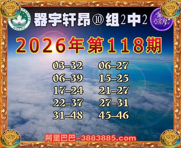 主题: 119期:阿里巴巴【器宇轩昂⑩组2中2】官方验证通过