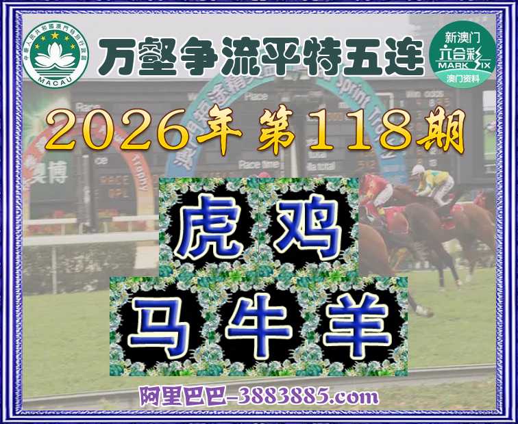 118期:『万壑争流』 👑平特五连👑【虎鸡马牛羊】开:猪08
