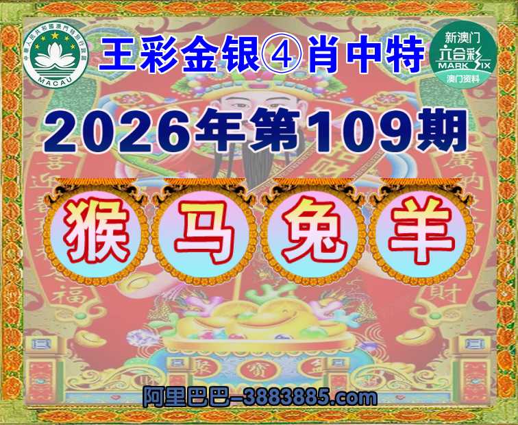 109期:《王彩金银》 🐁④肖中特🐁【猴.马..羊】开:兔16