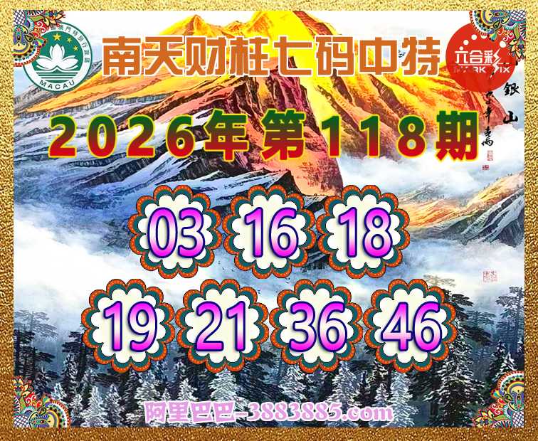 118期:🧣〖南天财柱〗🧣七码中特🧣【03.16.18.19.21.36.46】开:08